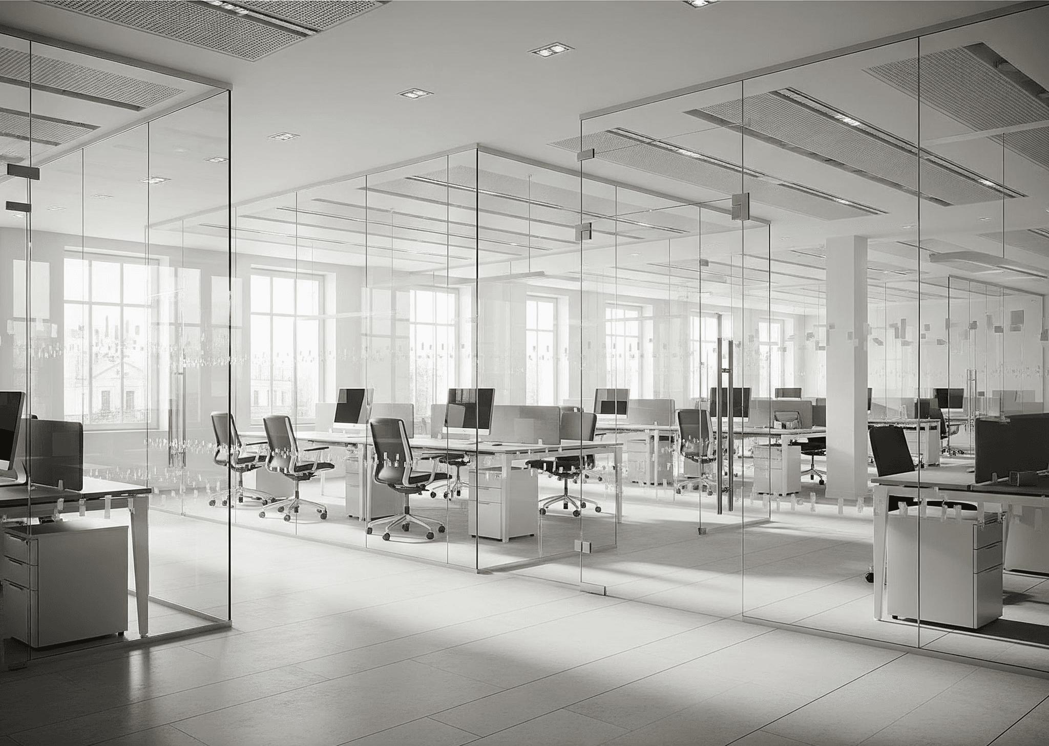 Frameless partitions are glass dividers that create distinct areas within a space while maintaining an open feel due to the absence of visible frames.